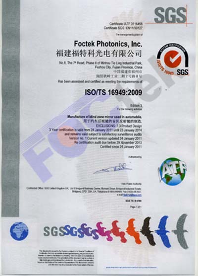 2004年通過了ISO 9001 2011年通過ISO/TS 16949: 2009